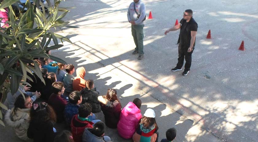 Προηγήθηκε ενημέρωση σε αίθουσα διδασκαλίας με προβολή power point για το ρόλο και τις δραστηριότητες του Λ.Σ. στις μεγάλες τάξεις και στη συνέχεια όλες οι τάξεις βγήκαν στην αυλή, όπου άρχισε η επίδειξη των δράσεων.