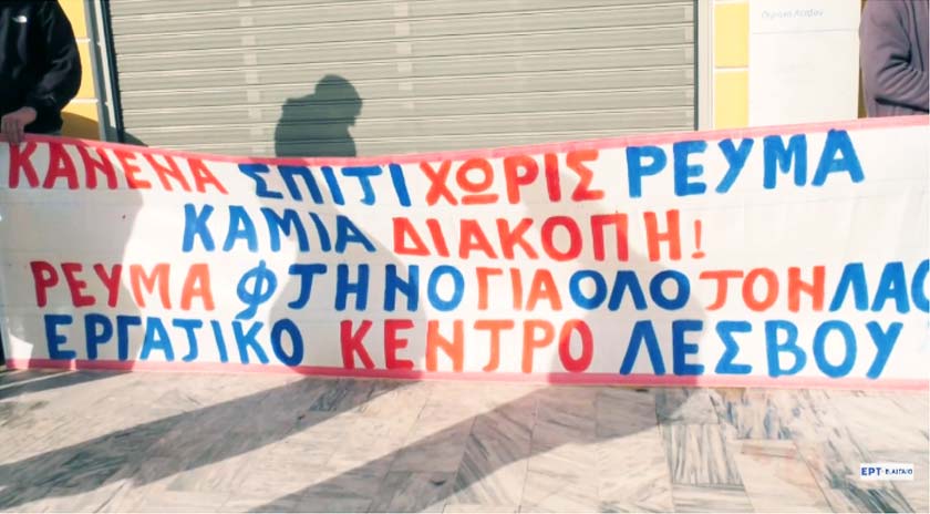 Για ανάλγητη πολιτική μίλησε στην κάμερα της ΕΡΤ ο Πρόεδρος του Εργατικού Κέντρου Λέσβου Γιάννης Ζαφειριου , ενώ ο δικηγόρος Απόστολος Κομνηνάκας πρώην κοινοτάρχης Αγίας Παρασκευής που εκπροσώπησε στη διαπραγμάτευση τον συμπολίτη μας που του έκοψαν το ρεύμα .