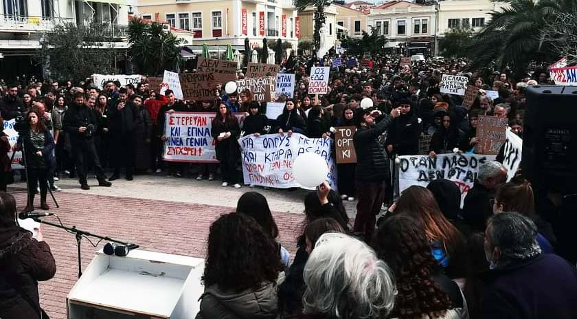 Τεράστια η συμμετοχή του κόσμου στην πορεία για την τραγωδία στα Τέμπη στη Μυτιλήνη
