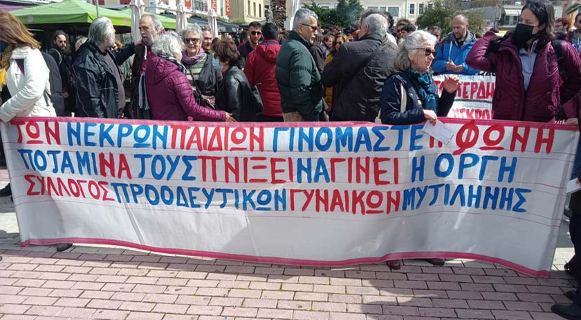 Στη συνέχεια ακολούθησε πορεία από την προκυμαία της Μυτιλήνης μέσω της αγοράς στο Κέντρο Υγείας Μυτιλήνης.