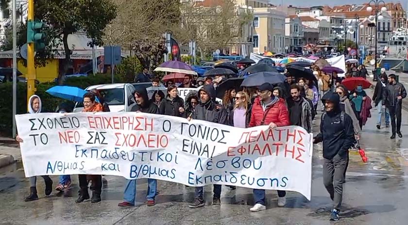 Στην ομιλία του ο Πρόεδρος του Εργατικού Κέντρου Λέσβου, κ.Γιάννης Ζαφειρίου κατήγγειλε την Διεύθυνση του ΕΠΑΛ λέγοντας ότι : «κλείδωσε του μαθητές για να μην κατέβουν στην συγκέντρωση και στην πορεία μαζί με τους γονιούς τους»