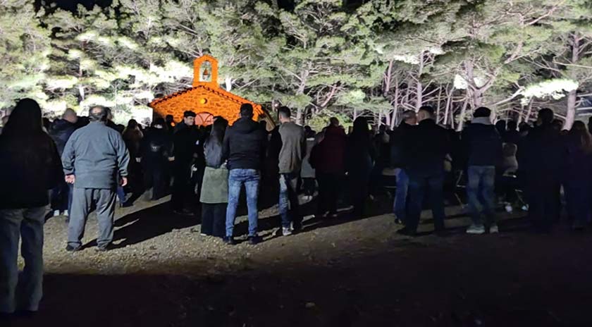 Ο φωτισμός διακριτικός χωρίς να ενοχλεί τους πιστούς που βρέθηκαν εκεί αλλά και τόσο ώστε να μπορείς να περπατήσεις χωρίς να σκοντάφτεις μέχρι την εκκλησία.