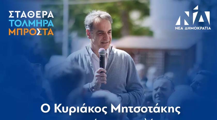Ο Πρωθυπουργός και Πρόεδρος της Νέας Δημοκρατίας Κυριάκος Μητσοτάκης θα συναντήσει και θα συζητήσει με τους πολίτες στη Μυτιλήνη την Παρασκευή 12/5/2023 στις 11:30 π.μ. στον πεζόδρομο πλησίον στοάς Βεκρέλλη (Ερμού 36).