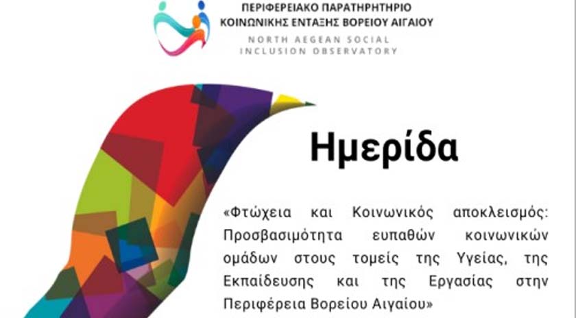 Το Περιφερειακό Παρατηρητήριο Κοινωνικής Ένταξης Βορείου Αιγαίου διοργανώνει ημερίδα με θέμα «Φτώχεια και Κοινωνικός αποκλεισμός : Προσβασιμότητα ευπαθών κοινωνικών ομάδων στους τομείς της Υγείας, της Εκπαίδευσης και της Εργασίας στην Περιφέρεια Βορείου Αιγαίου» στις 17.05.2023, ημέρα Τετάρτη, και ώρα 10:00 στην Αίθουσα του Επιμελητηρίου Λέσβου.