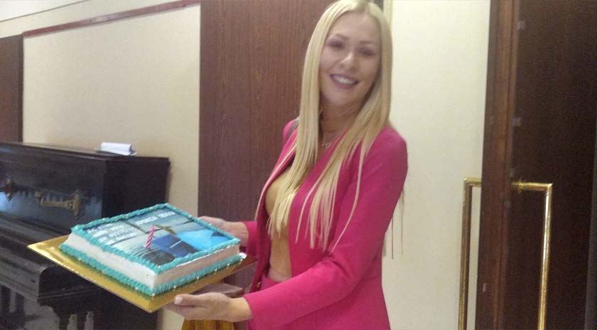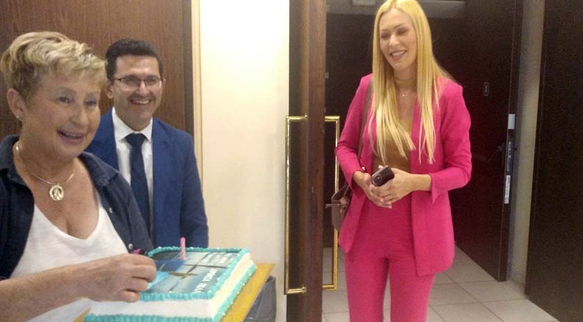 Η παρουσίαση συνδυάστηκε και με την ημέρα των γενεθλίων της γνωστής πιανίστριας και ο όπως πάντα φιλόξενος αντιδήμαρχος πολιτισμού της πρόσφερε μια τούρτα :