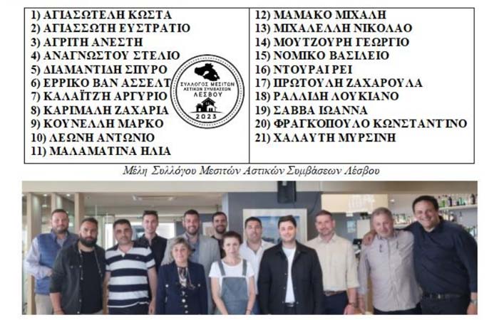 Η ίδρυση του Συλλόγου Μεσιτών Λέσβου αποδεικνύει όχι μόνο τις πολύ καλές σχέσεις που υπάρχουν μεταξύ των συναδέλφων αλλά και την ανάγκη να υπάρξει ένα συλλογικό όργανο.