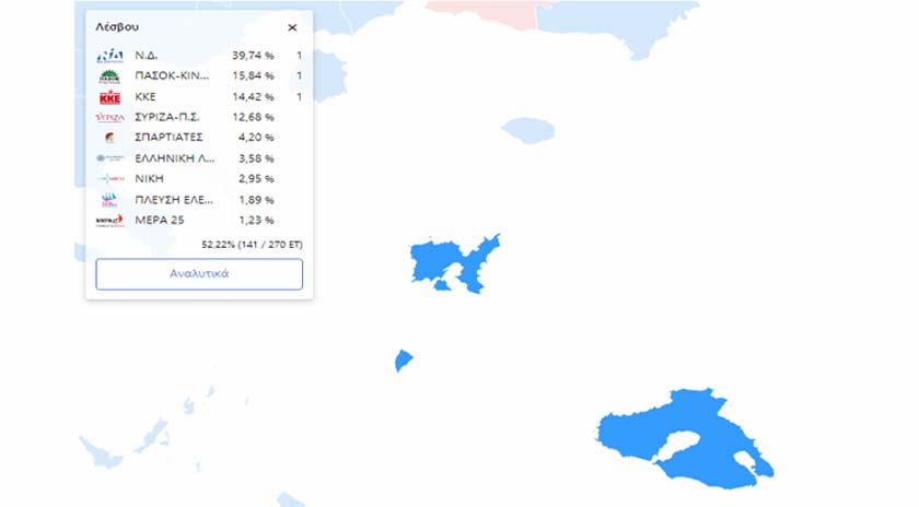 Παρακολουθήστε ζωντανά τα αποτελέσματα των εκλογών στην Εκλογική Περιφέρεια της Λέσβου και ανά Δήμο :