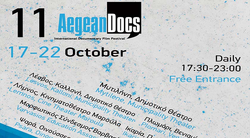 Με αφιέρωμα στο έργο του Λάκη Παπαστάθη, το 11ο AegeanDocs συναντά τους φίλους του ντοκιμαντέρ στα νησιά του Βορείου Αιγαίου από τις 17 έως τις 22 Οκτωβρίου. Σε 12 αίθουσες προβολής στις μεγάλες πόλεις, αλλά και σε χωριά των νησιών, προβάλλονται 43 ντοκιμαντέρ από την Ελλάδα και 11 χώρες της Ευρώπης και της Αμερικής. Σε όλες τις προβολές συμμετέχουν οι δημιουργοί των ταινιών συζητώντας με το κοινό των νησιών.