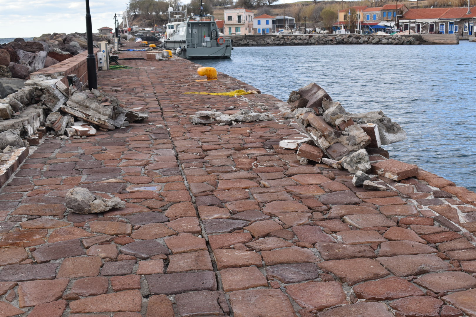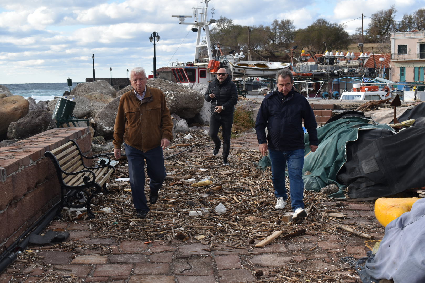 Αυτοψία Περιφερειάρχη Βορείου Αιγαίου στο λιμάνι Μολύβου για τις ζημιές από την κακοκαιρία