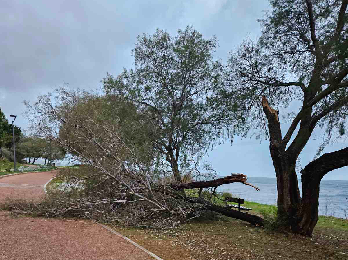 Τρία τουλάχιστον δέντρα ξεριζώθηκαν τη νύχτα μέσα στη Μυτιλήνη από τους θυελλώδεις νοτιάδες που ξεπερνούν τα 10 μποφόρ.