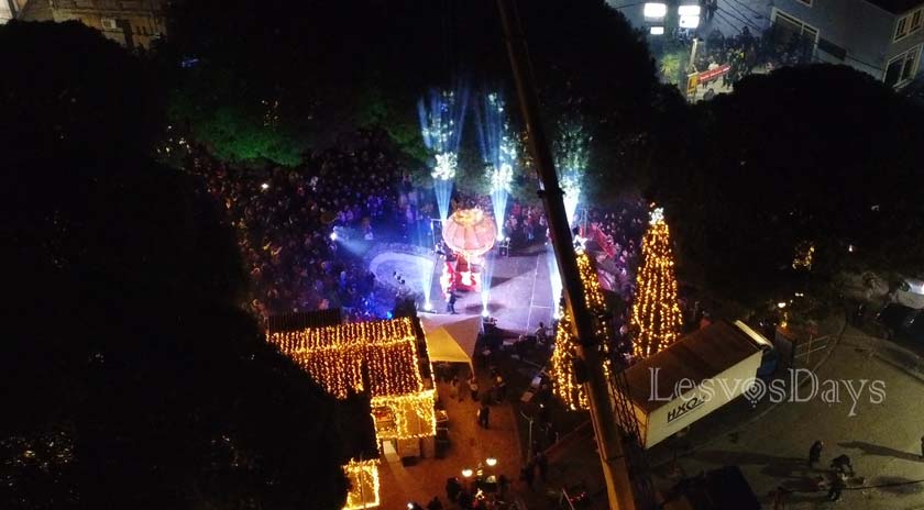 Πλήθος κόσμου συμμετείχε στην εκδήλωση με πολύ κέφι και τραγούδι με την συμμετοχή και του Μουσικού Σχολείου Δυτικής Λέσβου γεμίζοντας την Πλατεία της Καλλονής για την υποδοχή του Άι Βασίλη στο Χριστουγεννιάτικο Χωριό σε μια φαντασμαγορική γιορτή που έκανε την νύχτα μέρα.